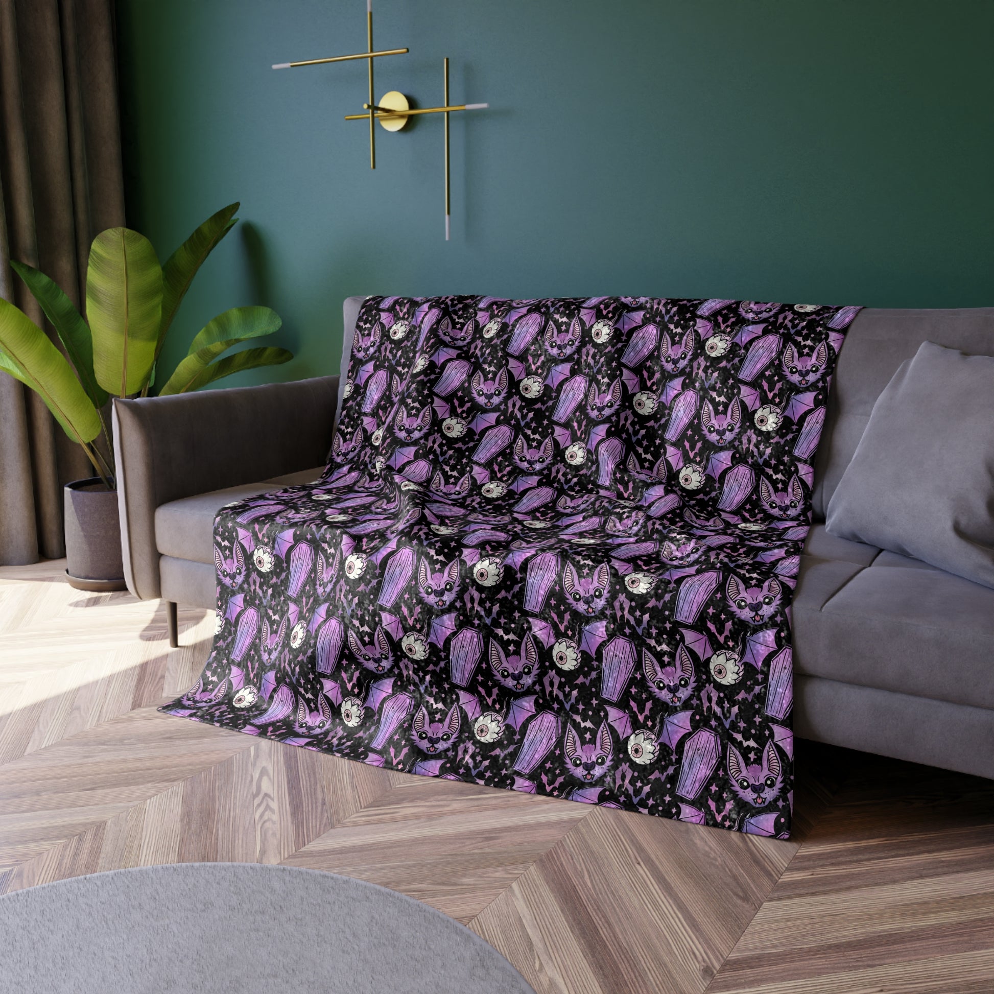 Bat and Eye Horror Blanket - Gothic Blanket - Pastel Goth Blanket - Cozy Crushed Velvet Blanket, Gothic Throw Blanket, Halloween Home Decor, Soft Velvet Blanket, Living Room Accent