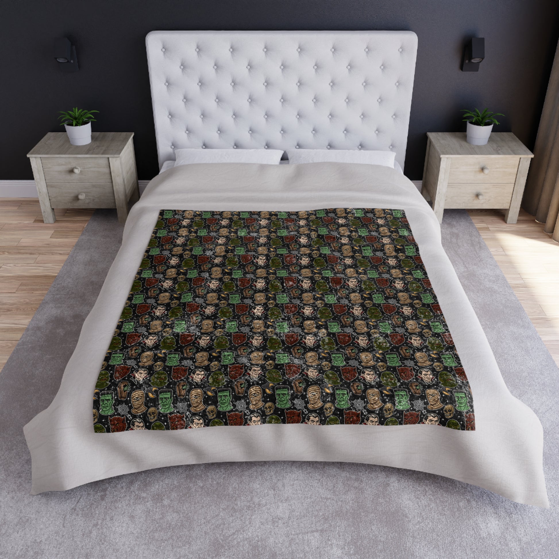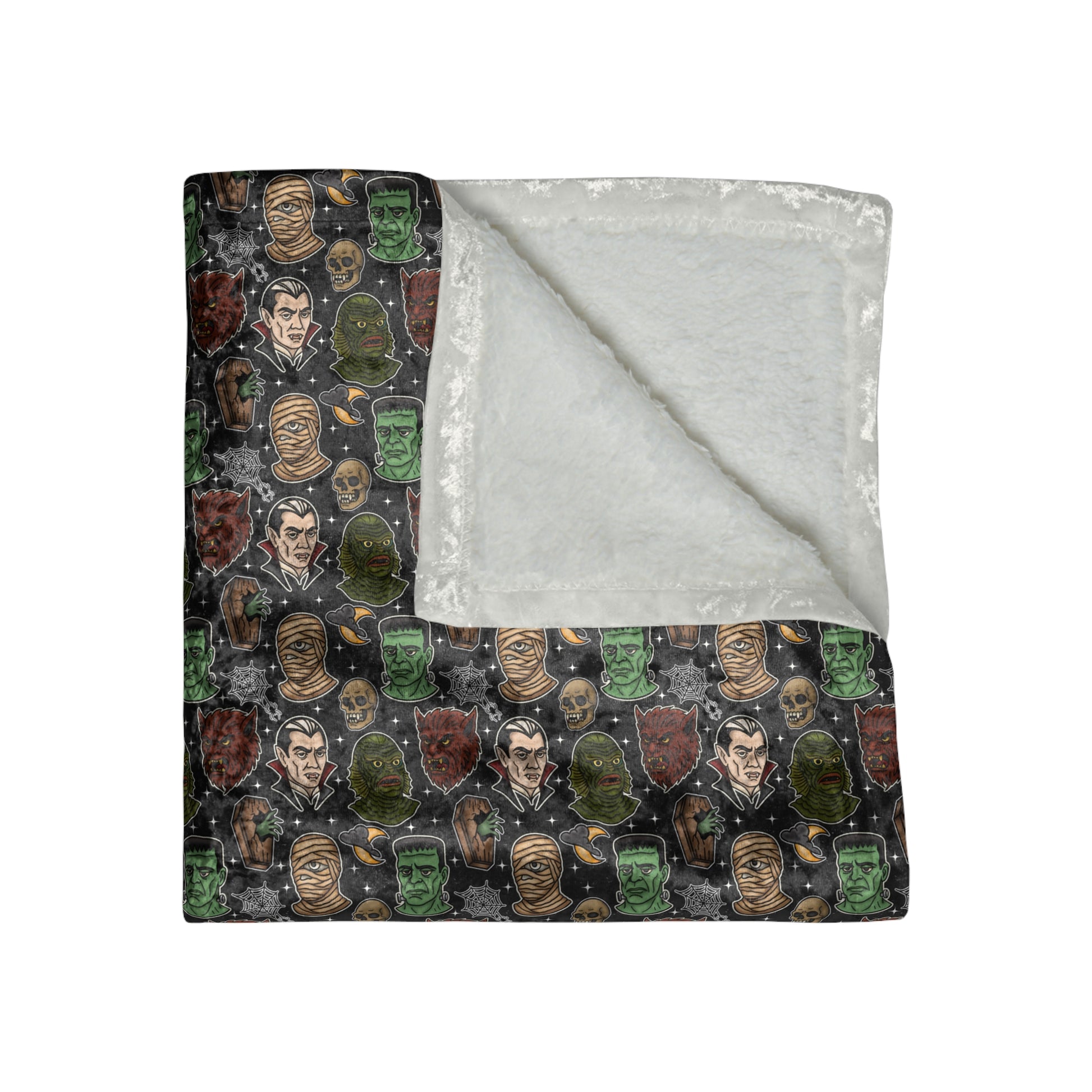 Classic Monster Horror Movie Blanket -Halloween Blanket- Wolfman, Dracula, Creature From The Black Lagoon Blanket Decor- Gothic Decor